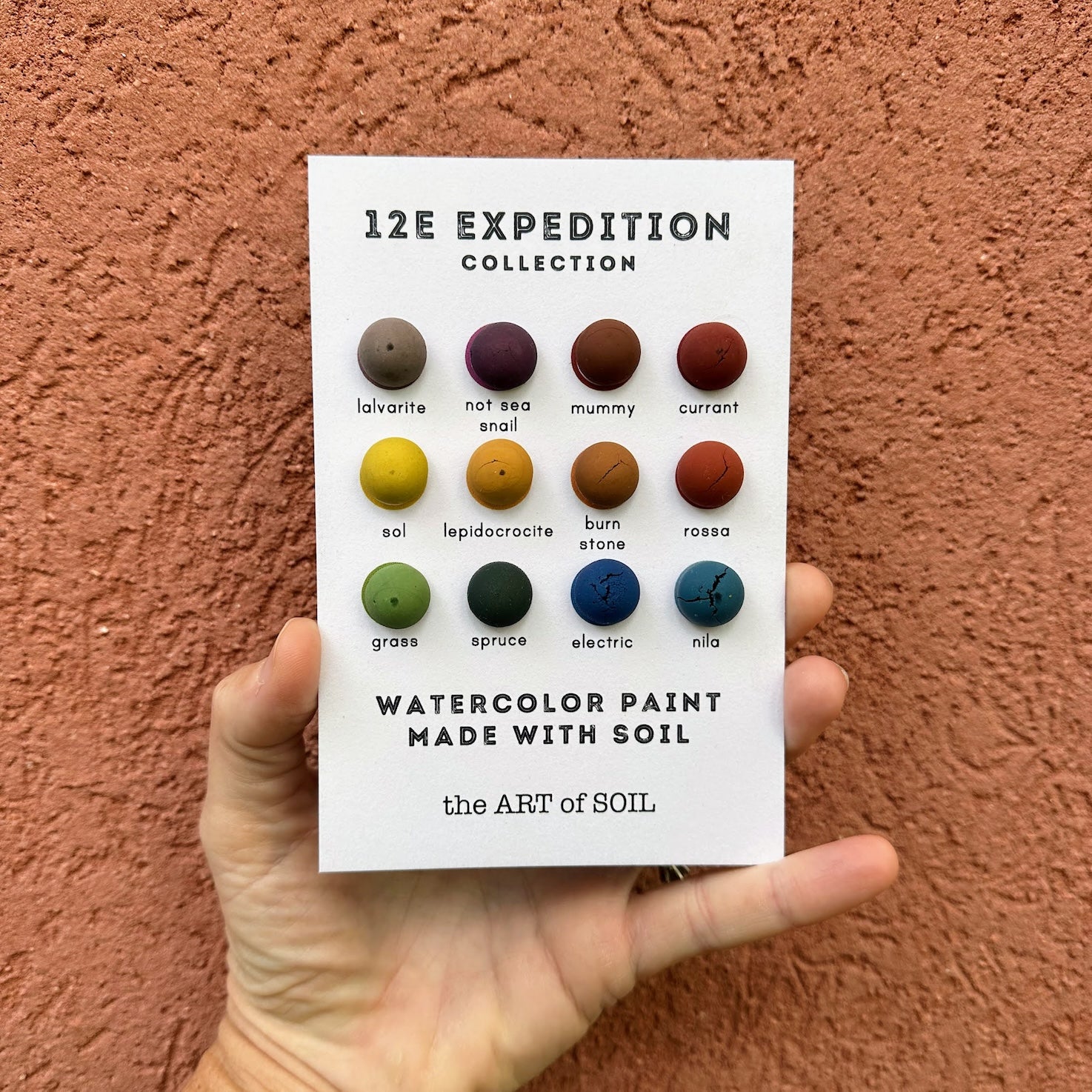 12 (all new) demi-sized, semi-spherical, pan-free, soil-based watercolor paint offered without a palette. Demi ecopods are ~0.75 ml of dry watercolor paint. Smaller than an ecopod - but larger than a mini.